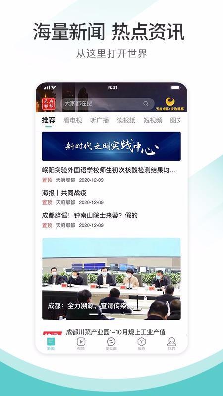 天府郫都是一个本地新闻客户端,通过新闻、视频、朋友圈和服务四大板块,丰富当地用户的使用体验;在线即可查看关于当地的新闻资讯,分类也齐全,同时还可以在该平台中看电视、听广播、读报纸等;在提供的视频板块中,可以查看推荐的电视栏目,自行进行栏目点播,选择栏目即可查看推荐的电视节目;包含的服务也多样,包括政务服务和便民服务,让本地用户便捷查询医疗信息、公交信息、航班班次、信用信息等;在提供的朋友圈中,当地的用户可以发布信息进行分享,同时也可以查看各种热门话题,自动标注新话题,选择话题就可以查看对应的动态信息。